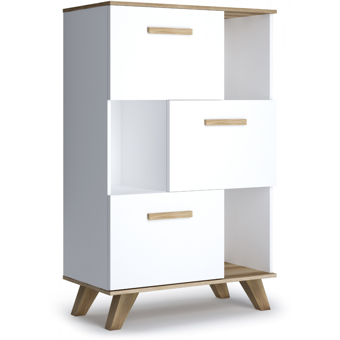 Шкаф низкий с нишами Вега Скандинавия (глянец, белый + дуб каньон)