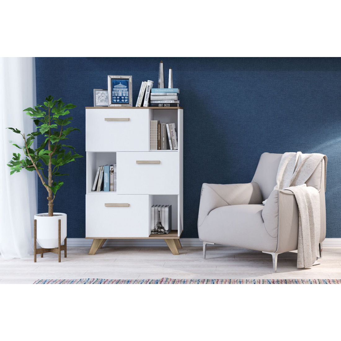 Комод 900 Вега Скандинавия (глянец, белый + дуб каньон)