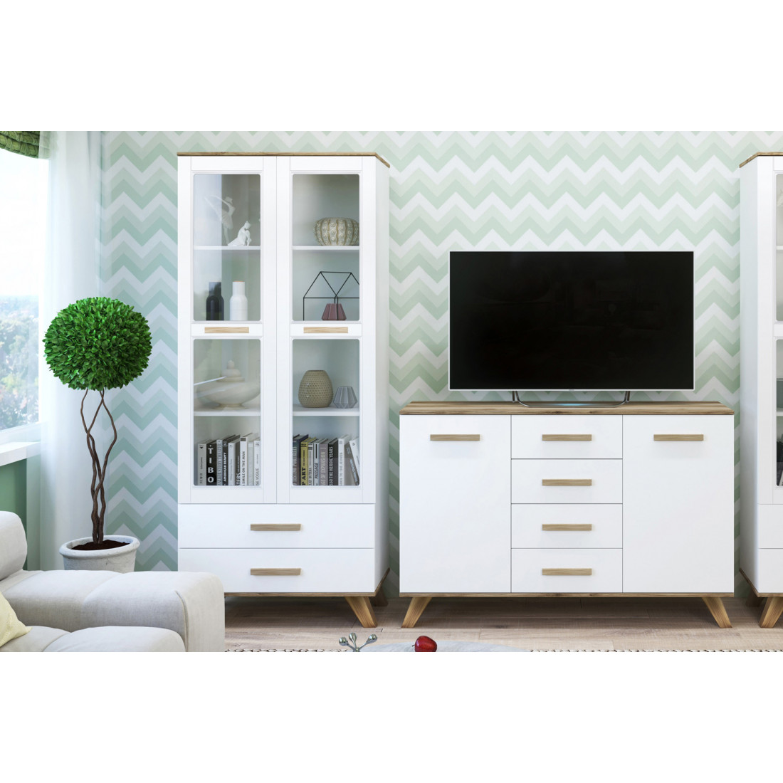 Корпус: ЛДСП в цвете белый+дуб каньон