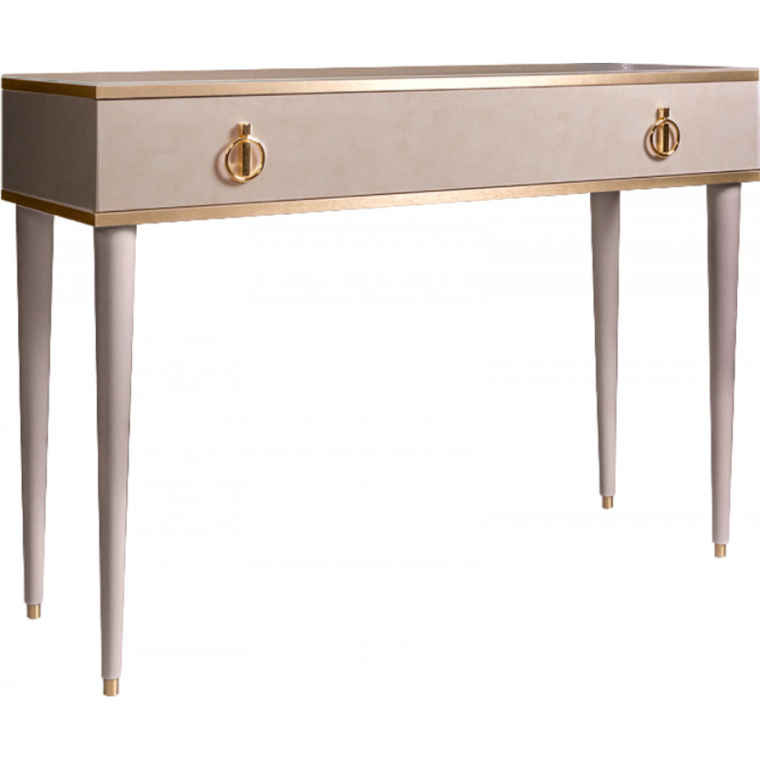 Оригинальным дизайнерским ходом стало решение «поставить»  туалетный столик Rimini на высокие деревянные ножки с латунными или алюминиевыми наконечниками.