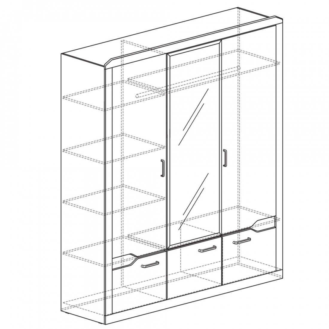 Четырехстворчатый шкаф для одежды СК-8 (СА/ОРТ) Кантри с зеркалом