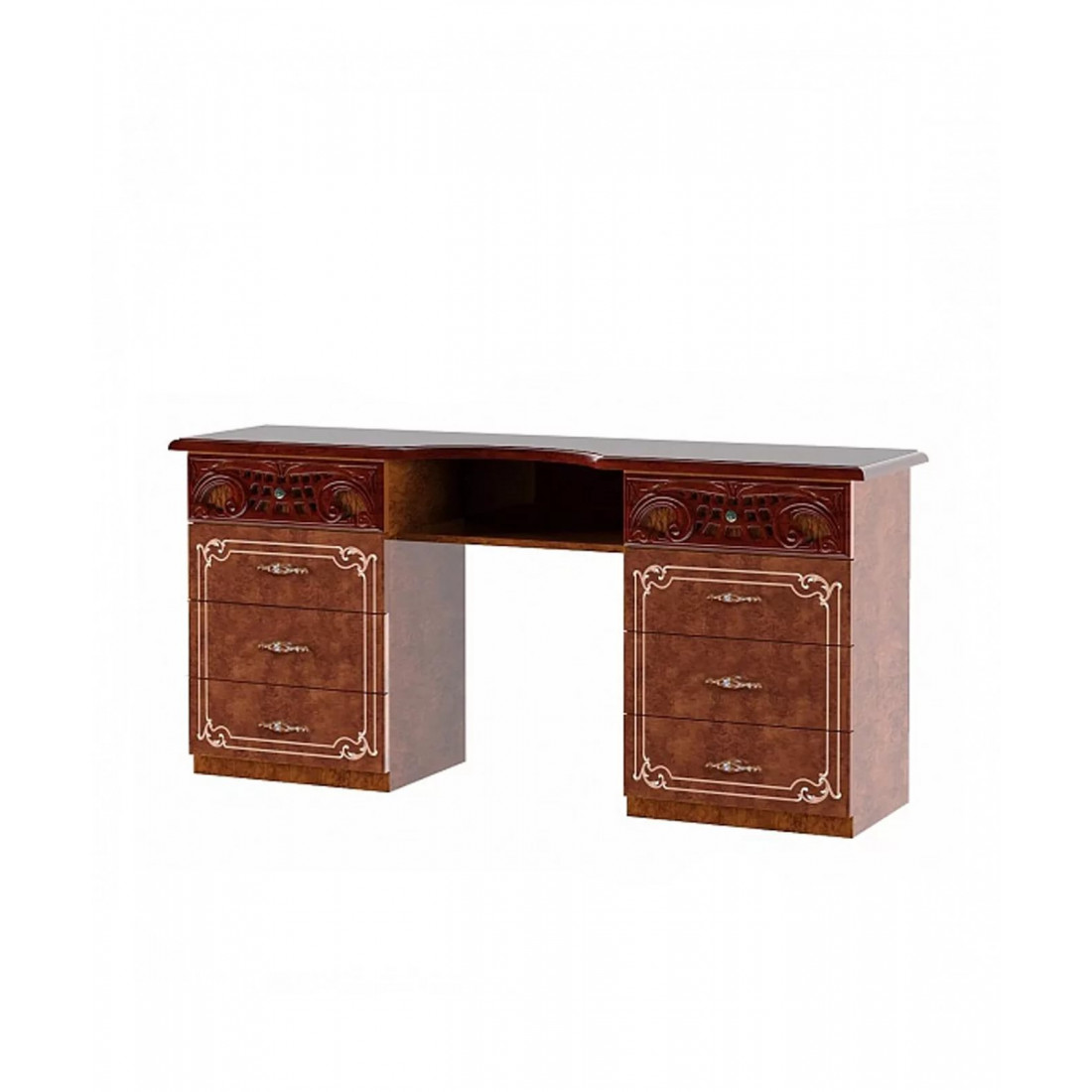 Туалетный столик Роза ТС 160 (орех) от фабрики ДИА мебель выполнен в классическом стиле. Цвет ореха в сочетании с глянцевым покрытием придаст вашей спальне больше элегантность и эстетичность. Такой столик не займет много места и будет незаменим в вашей спальной комнате. Большие и прочные ножки делают его неподвижным и соответственно устойчивым.
